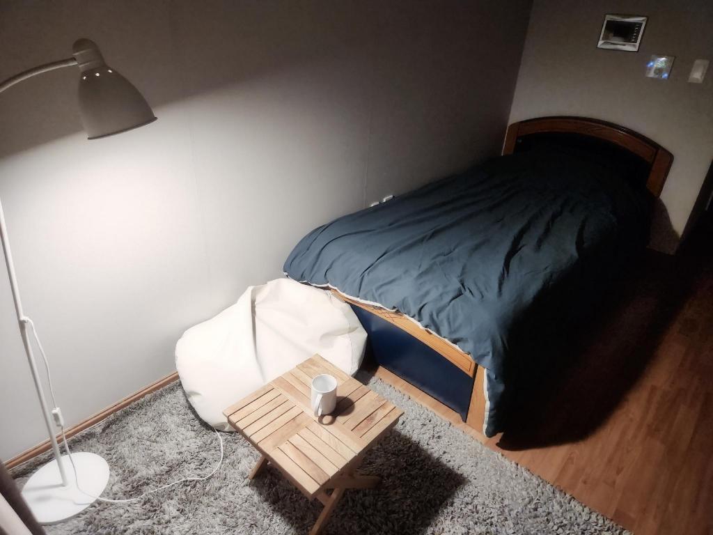 객실은 아담했지만 혼자 지내기에 충분했습니다. 침구류는 깨끗하고 뽀송해서 잠자리가 아주 편안했어요.