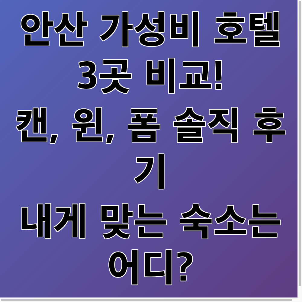 안산에서 합리적인 가격에 괜찮은 숙소를 찾고 계신가요? 오늘은 많은 분들이 궁금해하시는 안산 캔, 윈, 폼 세 곳의 호텔을 꼼꼼하게 비교해보고, 여러분의 여행 스타일에 딱 맞는 곳을 찾을 수 있도록 솔직한 후기를 들려드릴게요. 각 호텔의 장단점을 파악하고 현명하게 선택해보세요.